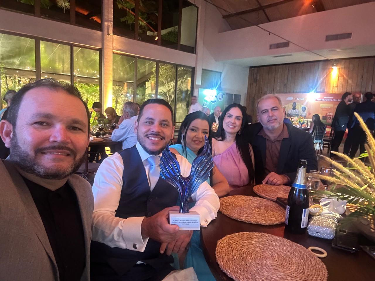 Nilberto Matos, Gerente Comercial da Norcola (primeiro da esq. p/ dir.), entrega troféu para equipe da Canta Galo
